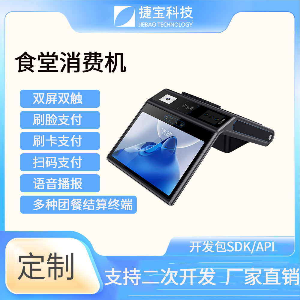 捷寶科技是國內最早推出基于Android系統智能硬件的廠家之一。產品形態(tài)涵蓋手持、臺式、立式、掛式、柜式、單屏、雙屏;功能上圍繞NFC識別、條碼識別、生物識別,AI識別等技術大類,開發(fā)出可識別CPU卡、M1卡、射頻卡、二代身份證、社保卡、一維條碼掃描、掃碼支付、指紋識別、人臉識別、掌靜脈識別、虹膜識別、AI菜品識別、智能語音識別等功能的各類產品。